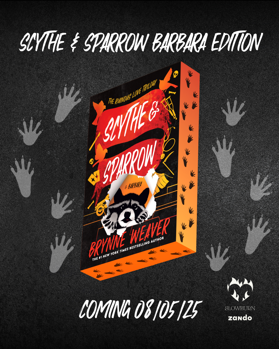 INDIE EXCLUSIVE EDITION of Scythe & Sparrow, featuring everyone’s favorite raccoon and paw print sprayed edges!